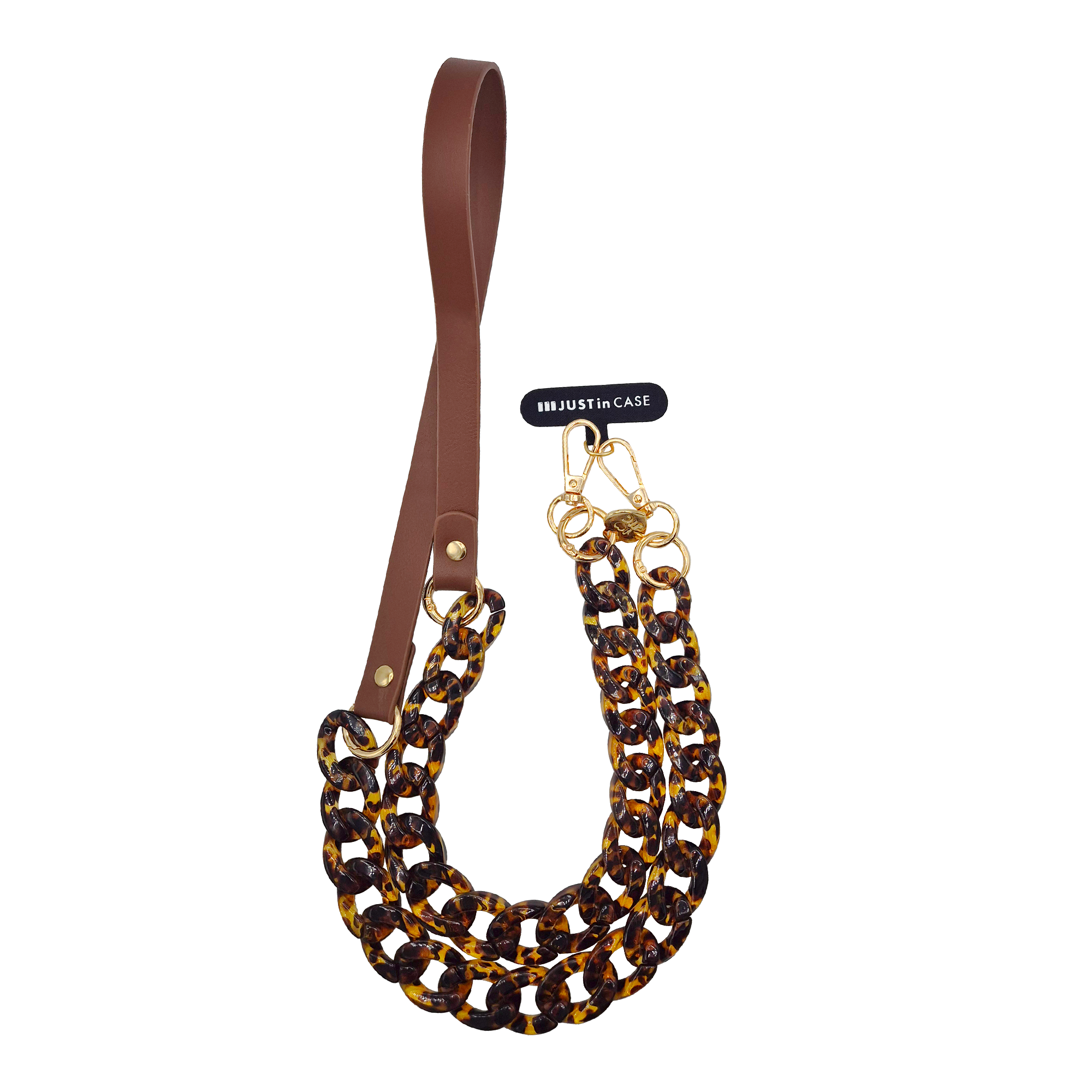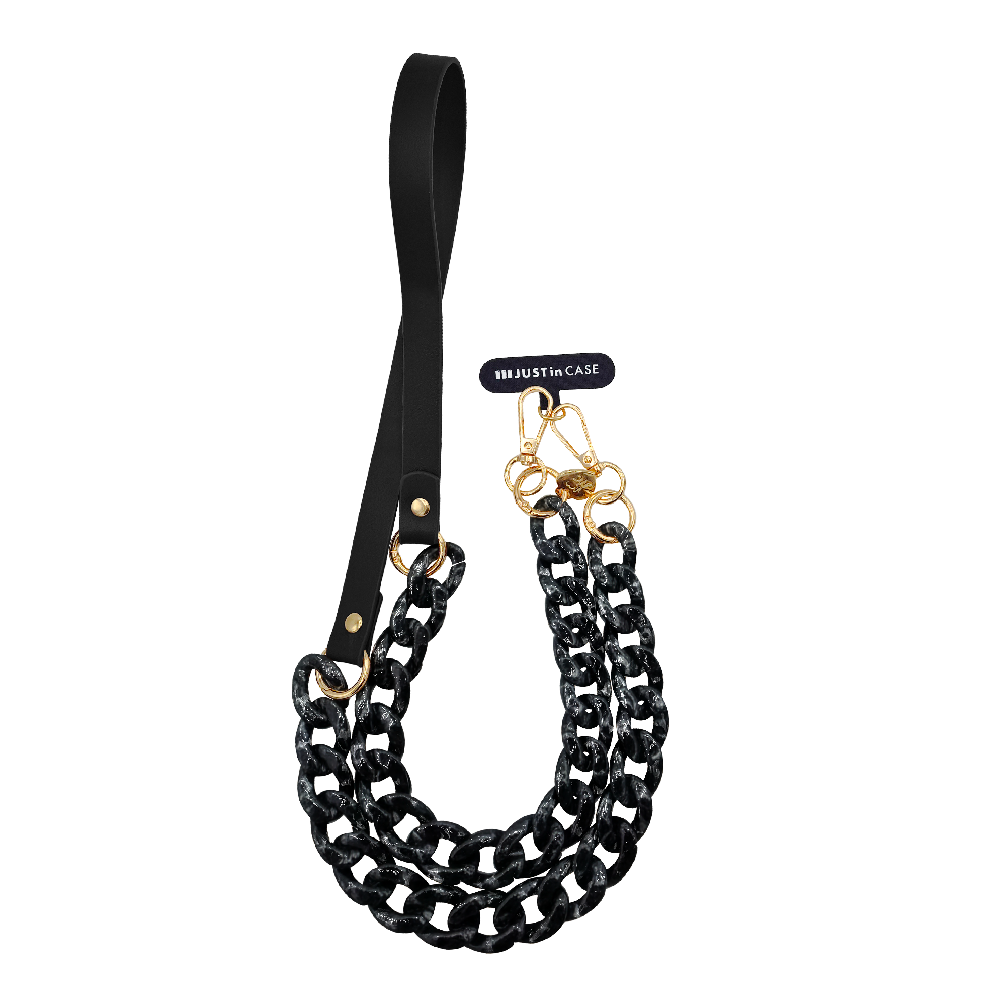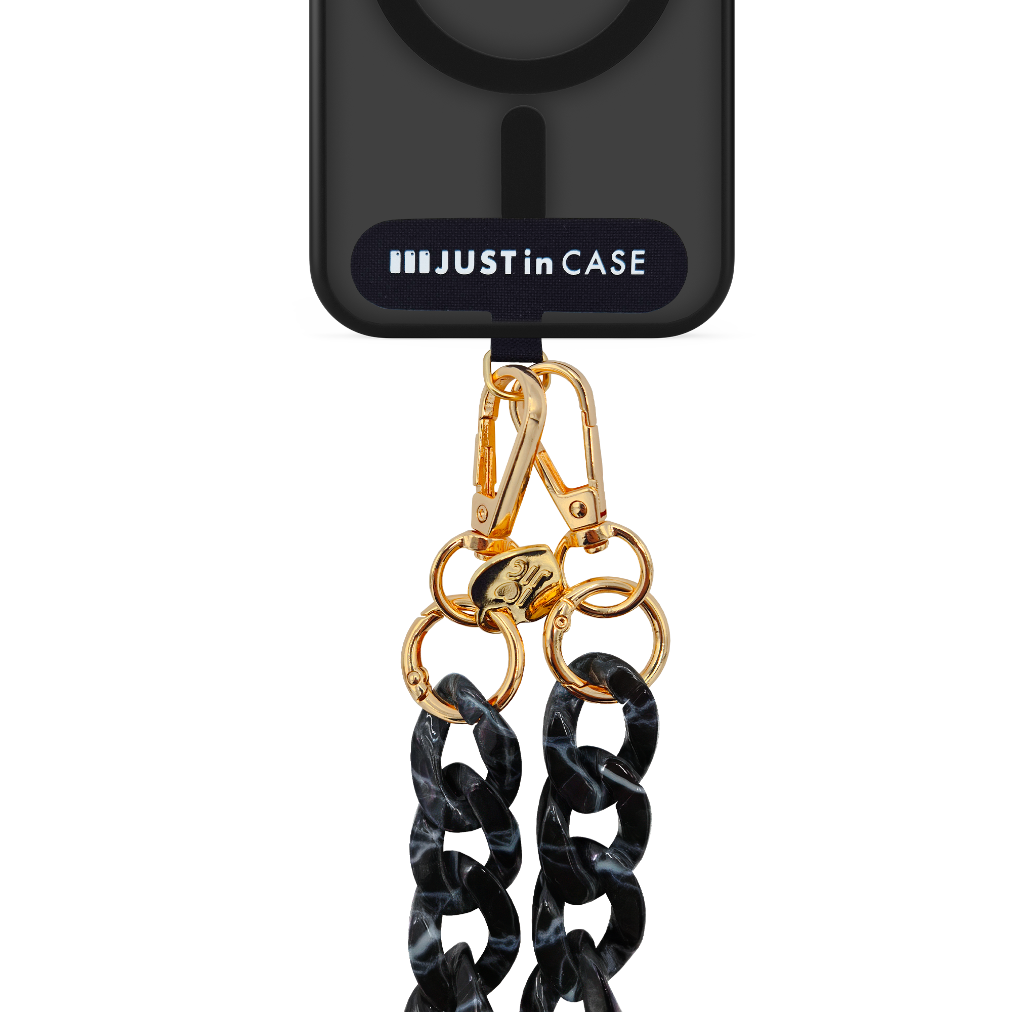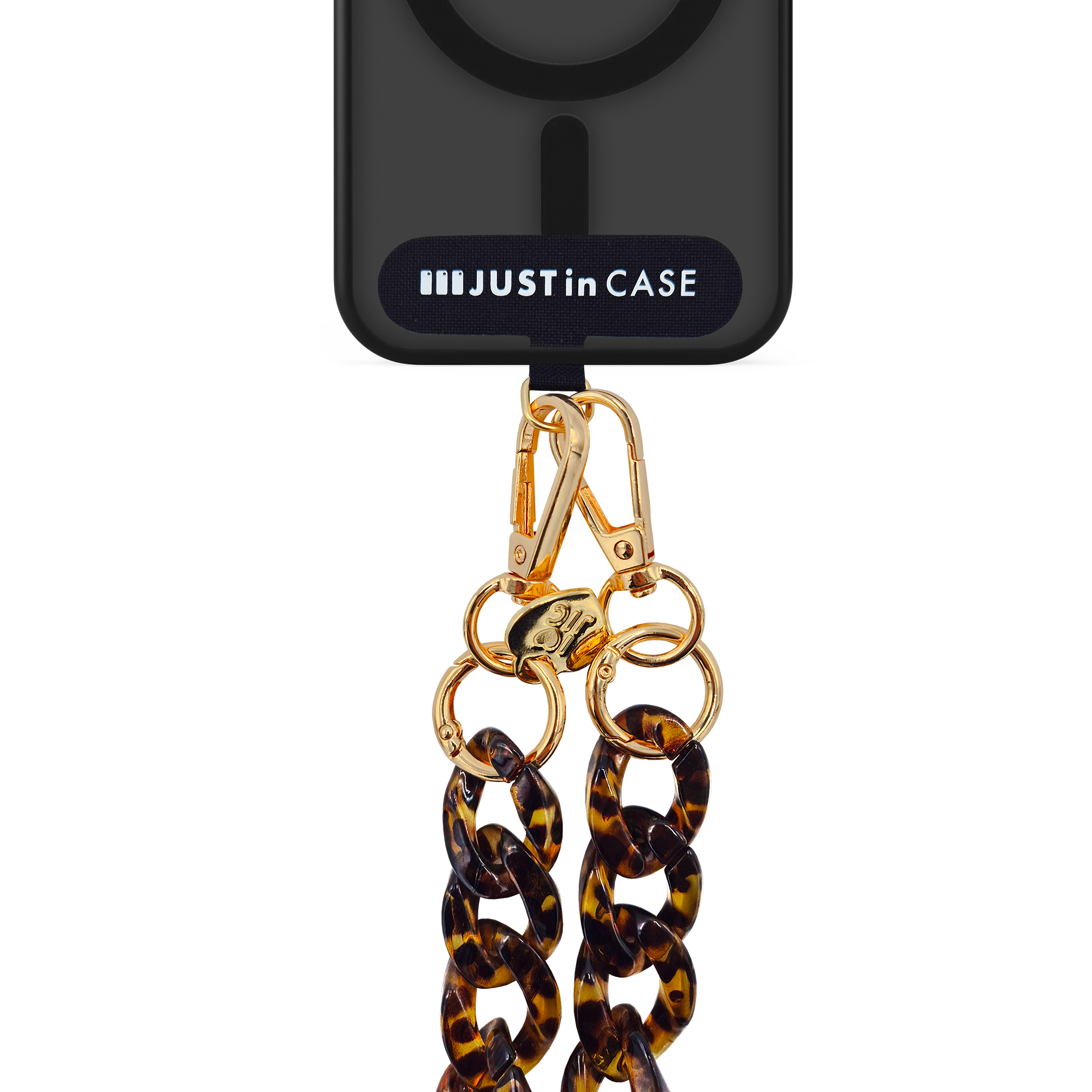 Ogni dettaglio è curato con la precisione che contraddistingue Just In Case: moschettoni gold ad alta resistenza, finiture metalliche lucide, e una struttura robusta che garantisce stabilità durante l’utilizzo quotidiano.