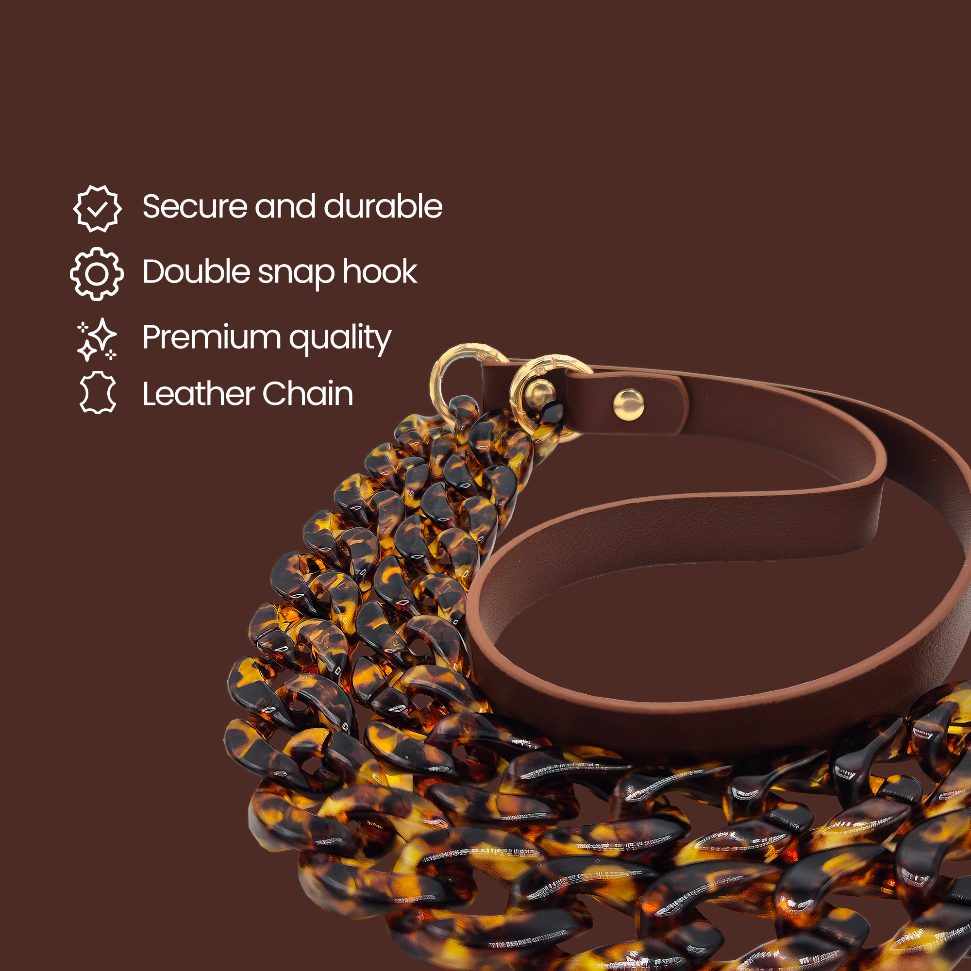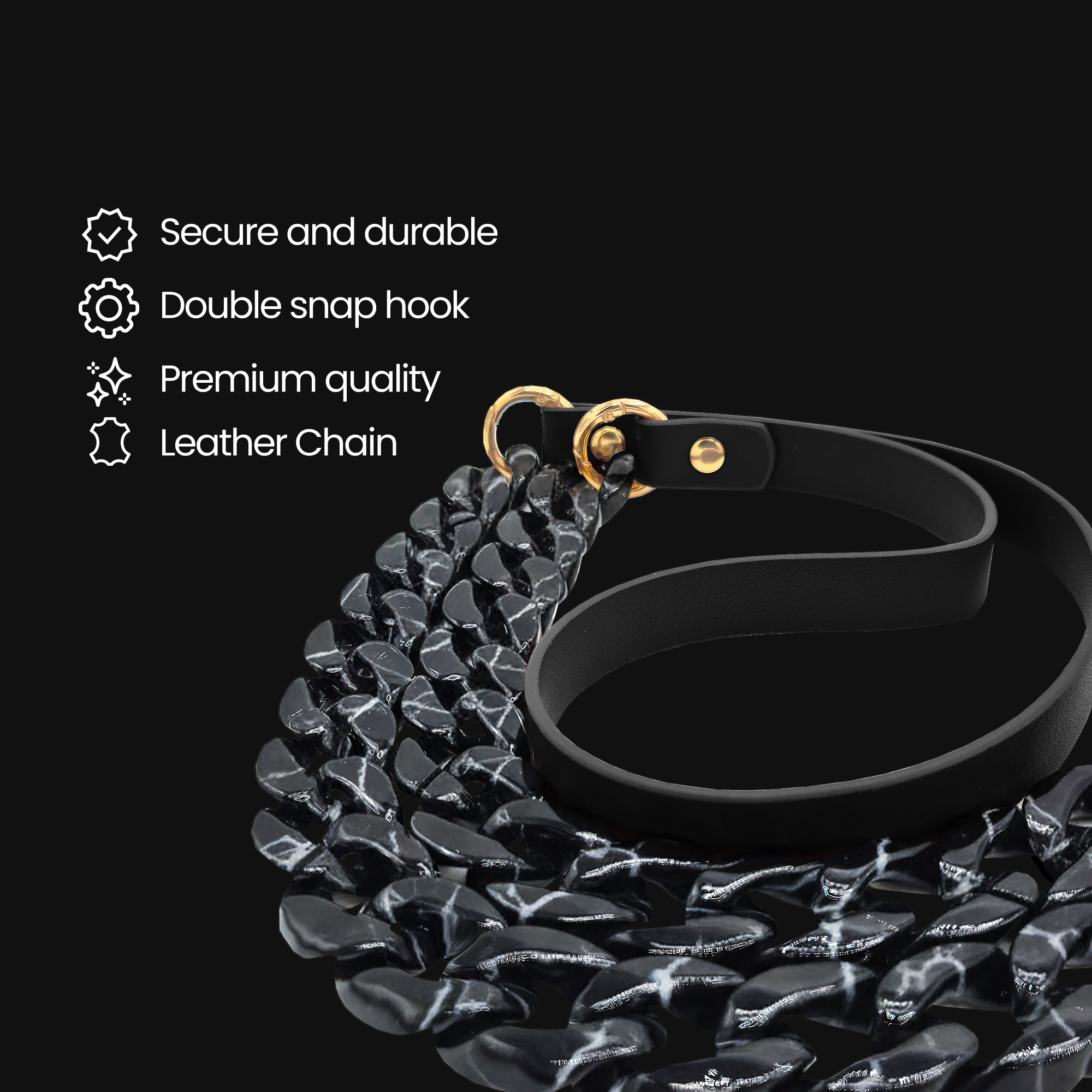 Il LACCIO CHAIN – LEATHER è la scelta ideale per chi desidera trasformare il proprio smartphone in un vero accessorio di stile. La combinazione tra pelle premium e catena acrilica effetto tartarugato o marmorizzato dona al tuo device un look raffinato, moderno e incredibilmente distintivo.